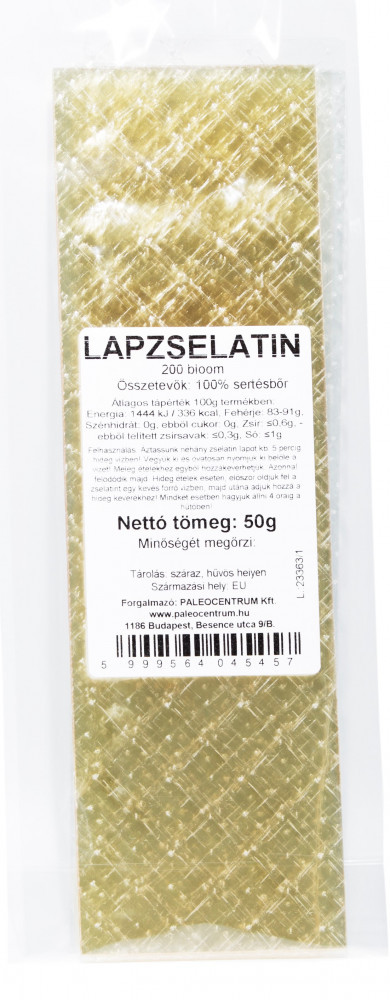 Felhasználás: Áztassunk néhány zselatin lapot kb. 5 percig hideg vízben! Vegyük ki és óvatosan nyomjuk ki belőle a vizet! Meleg ételekhez egyből hozzákeverhetjük. Azonnal felodódik majd. Hideg ételek esetén, először oldjuk fel a zselatint egy kevés forró vízben, majd utána adjuk hozzá a hideg keverékhez! Mindkét esetben hagyjuk állni 4 óráig a hűtőben!